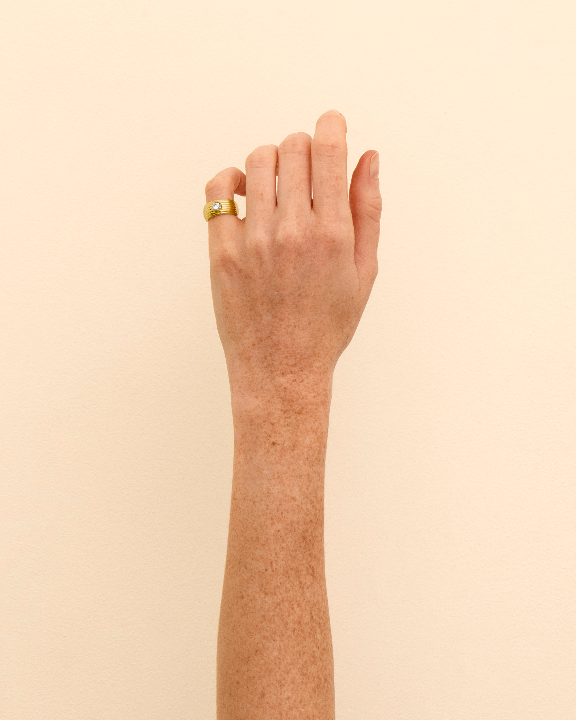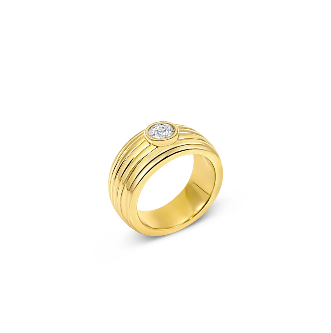 Sculpted and textured, the Calypso Ring centers on a sparkling zirconia. Bold yet refined, its curved lines create a strong, effortless statement for modern everyday wear.